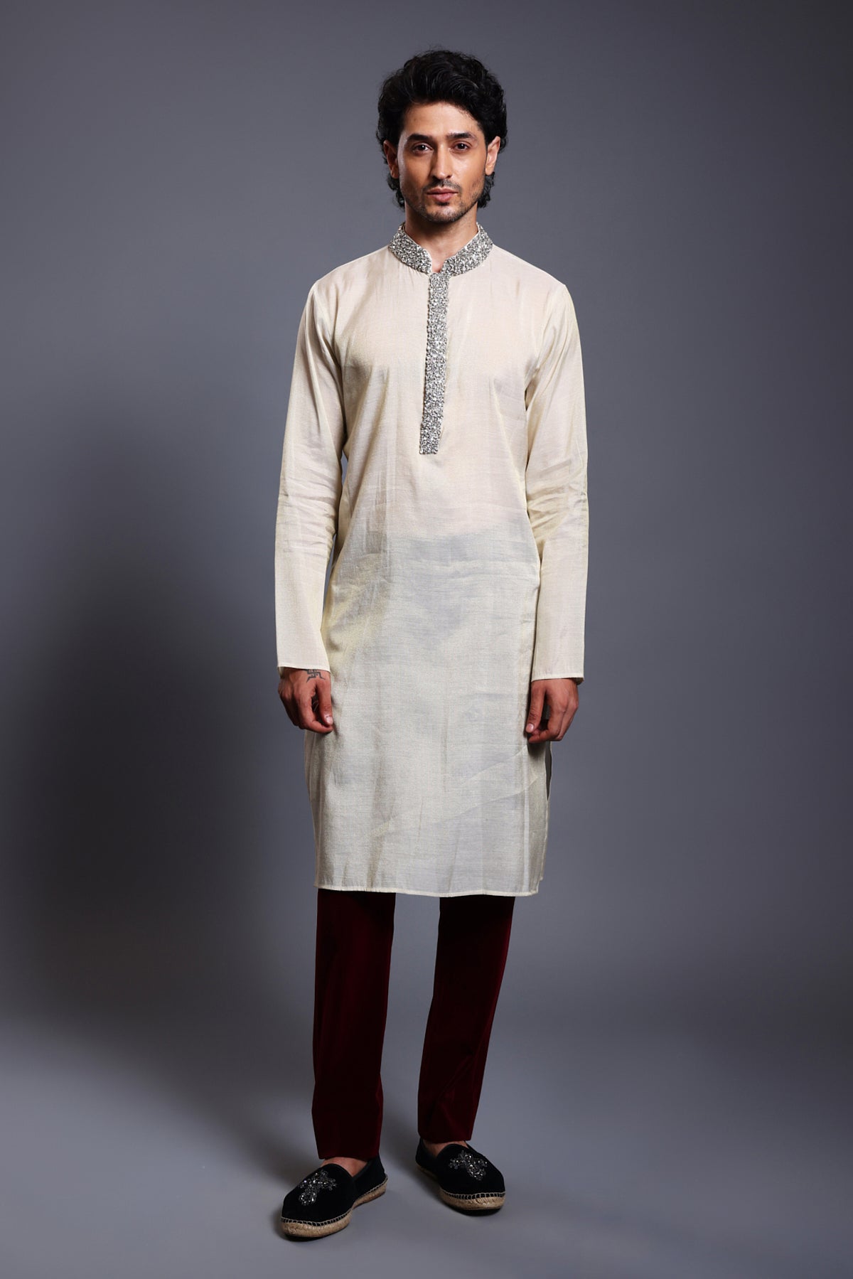 CF crystal neck kurta ivory