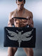 Black quilted raw silk carryall with mix media embroidered dragonfly.