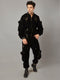 Black Velvet Bomber Jacket with 3D Pockets, leather trims and Insignia Hardware