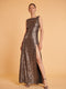 Gunmetal striped 3D sequin slitted gown