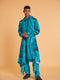 Blue digital printed blended linen draped kurta, pyjamas & dupatta