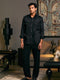 Black Cotton satin shirt with pintuck and pocket detail