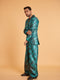 Blue Mughal digital printed double breasted blazer with oversized pants & toggle detail