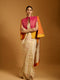 Orange, fuchsia & yellow quilted cape jacket with crystallized idol face applique motif