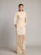 Skin sheer column gown with ivory sequin 3D floral embroidery