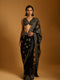 Black net saree with gunmetal mix media embroidery and bootie border Paired with blouse to match.