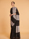 Ivory & black engineered striped sequin hand embroidered net saree with velvet checkered blouse