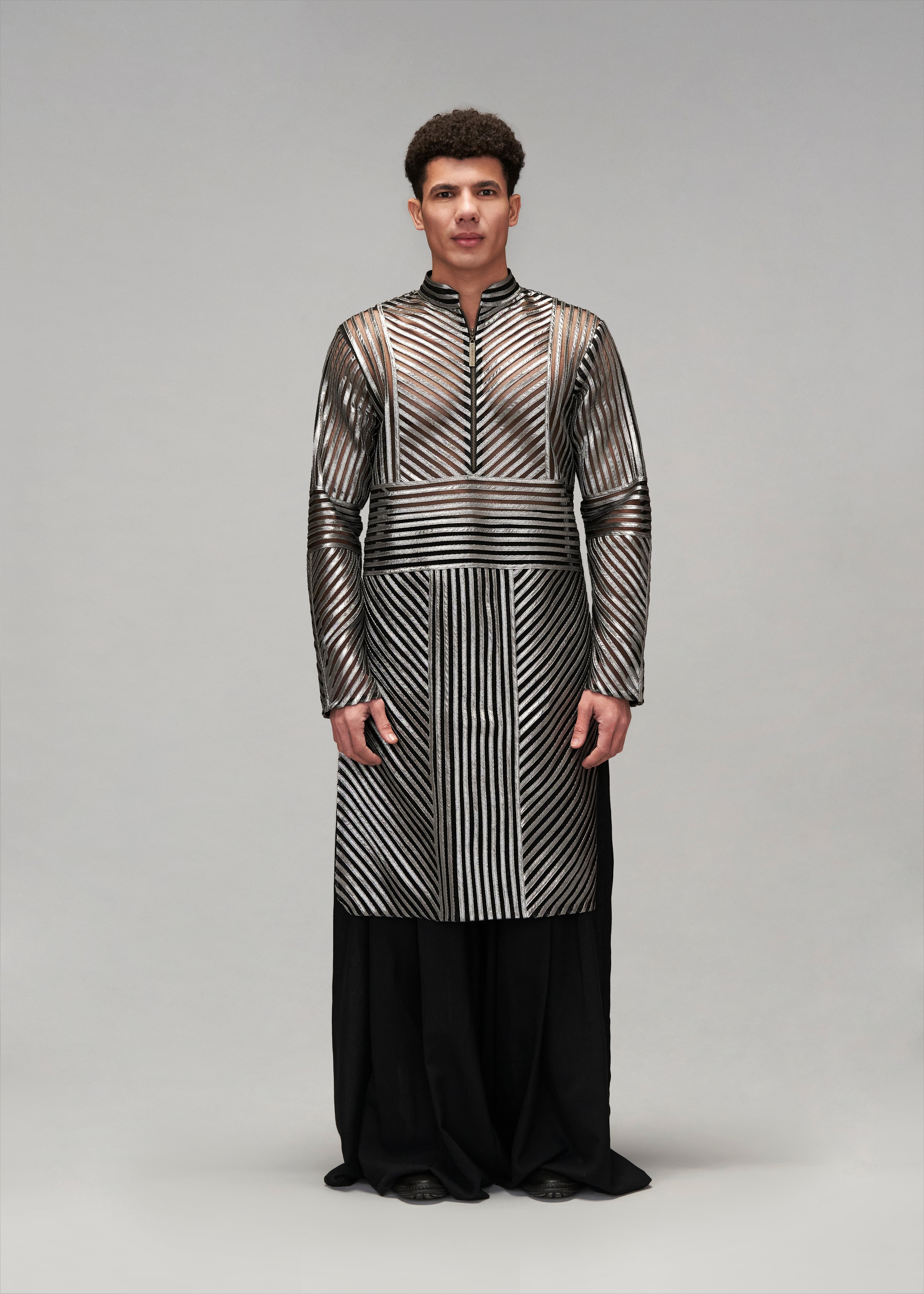 Starlight panelled metallic strip work kurta