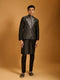 Black raw silk paneled zipper bandi with threadwork & crystal embroidery Kurta & pants included.