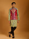 Quilted & paneled strip work brocade zipper bandi Paired with peppermint chanderi kurta Pants included.