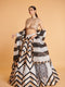 B&W with gold engineered chevron, crystal & threadwork organza lehenga and zari strip work crystal keyhole blouse paired with paneled B&W organza dupatta.