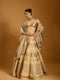 Beige taffeta lehenga with gold applique & sequin embroidery Paired with gold quilted blouse & dupatta to match.