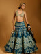 Teal raw silk lehenga with aqua floral threadwork & crystals. Paired with aqua raw silk mix media booties & organza dupatta to match.