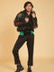 Black Neoprene Mesh Marshmallow Jacket with Emerald Highlights