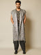 Gunmetal jacquard sleeveless overcoat with floral crystal vector