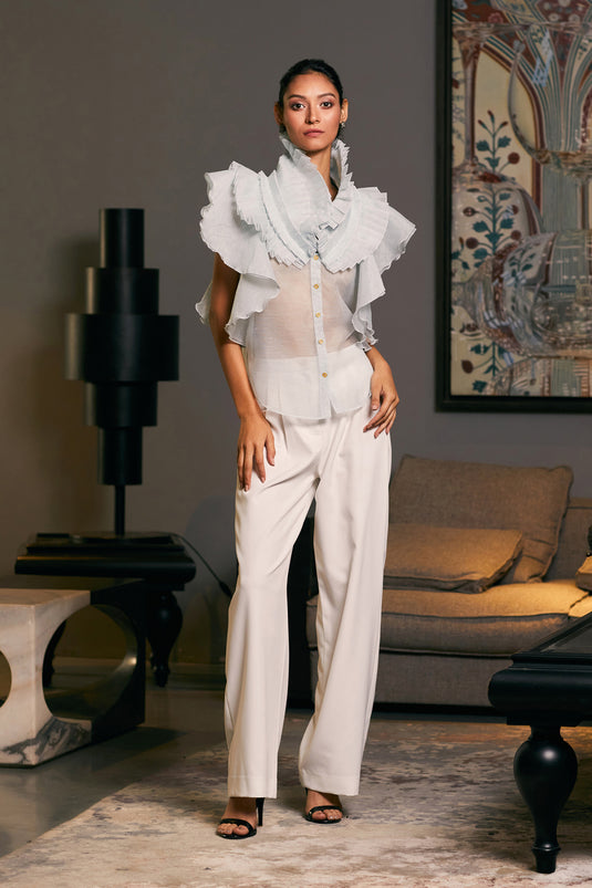 Ice Textured organza shirt with Victorian collar & cascade sleeves