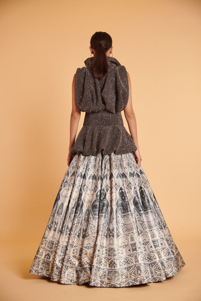Silver Mughal digital printed 30 kali lehenga skirt