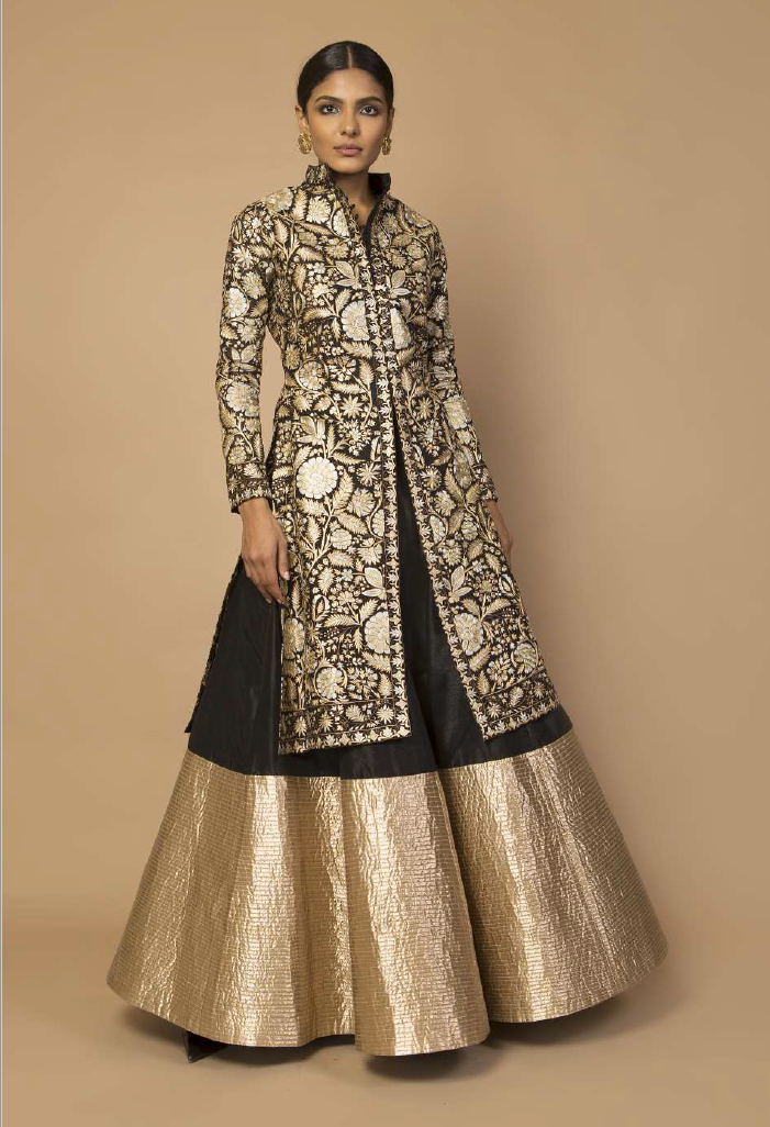 Dupion kalidaar skirt with quilted lamme hem.