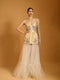 Cream chanderi quilted umbrella corset with mix media motifs.